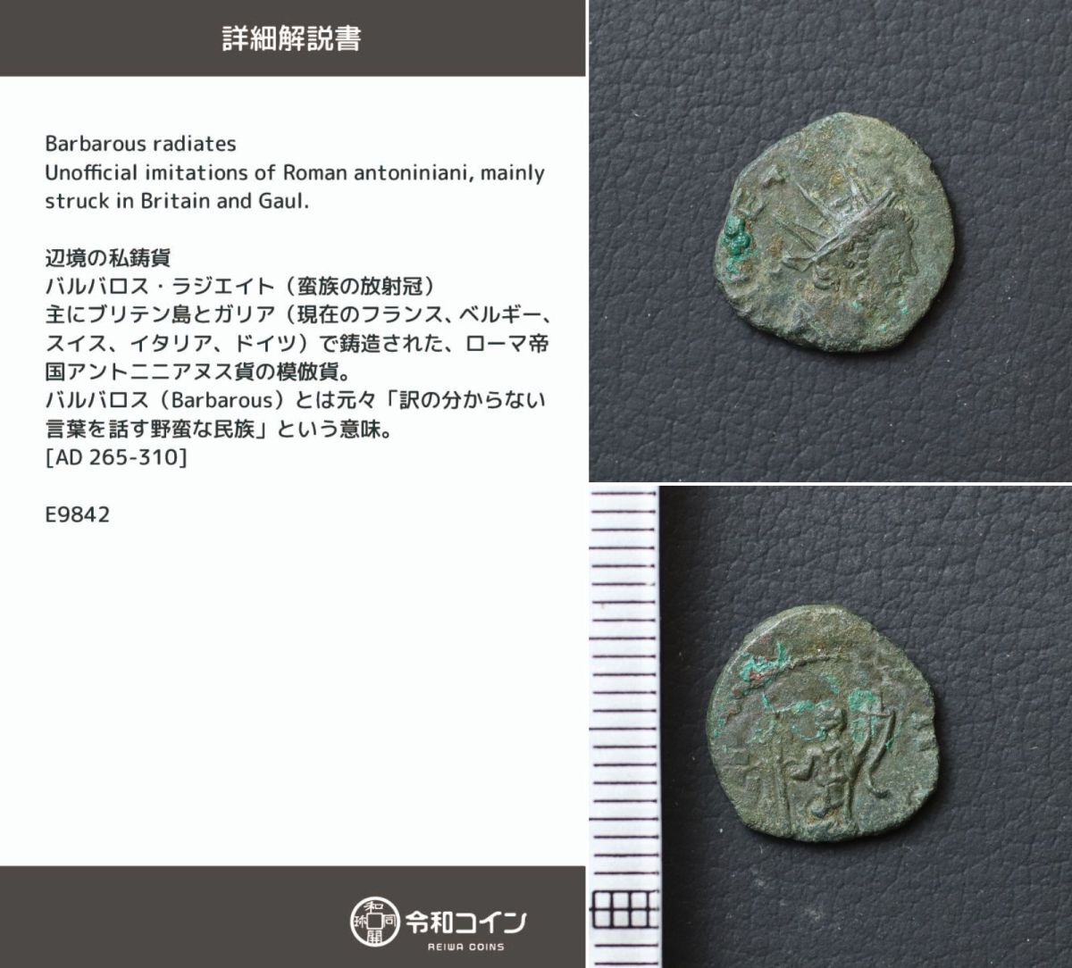 > *[令]辺境の私鋳貨「バルバロス・ラジエイト」古代ローマコインの模倣貨【詳細説明カード付】古代ギリシャ[E9842]7r0