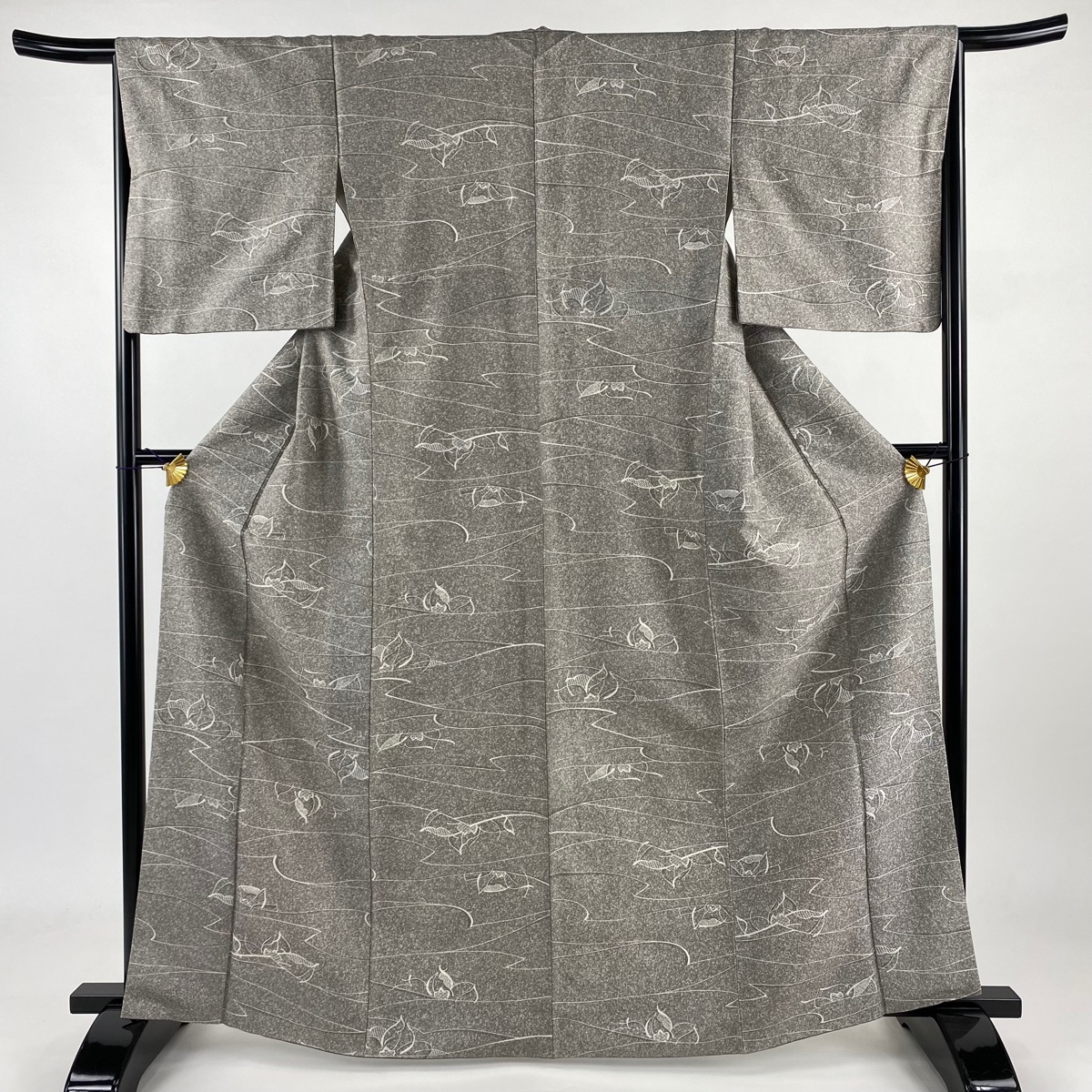 > 小紋 身丈165cm 裄丈66cm M 袷 花 幾何学 灰色 正絹 秀品 【中古】