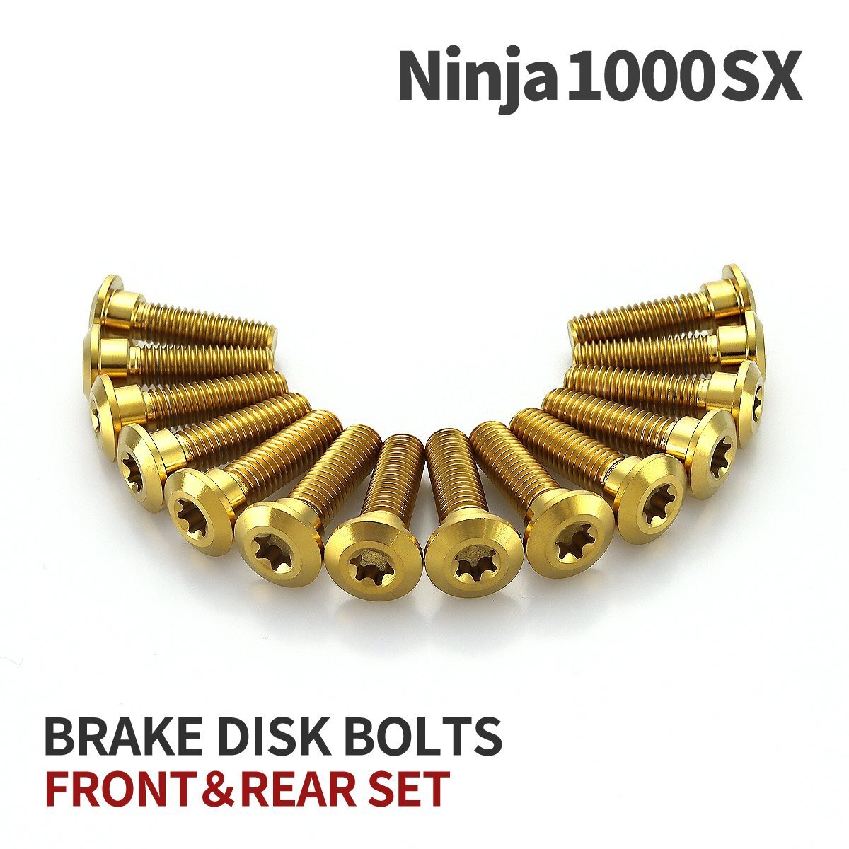 > Ninja1000SX 64チタン ブレーキディスクローター ボルト フロント リア 14本セット M8 P1.25 カワサキ車用 ゴールドカラー JA22103