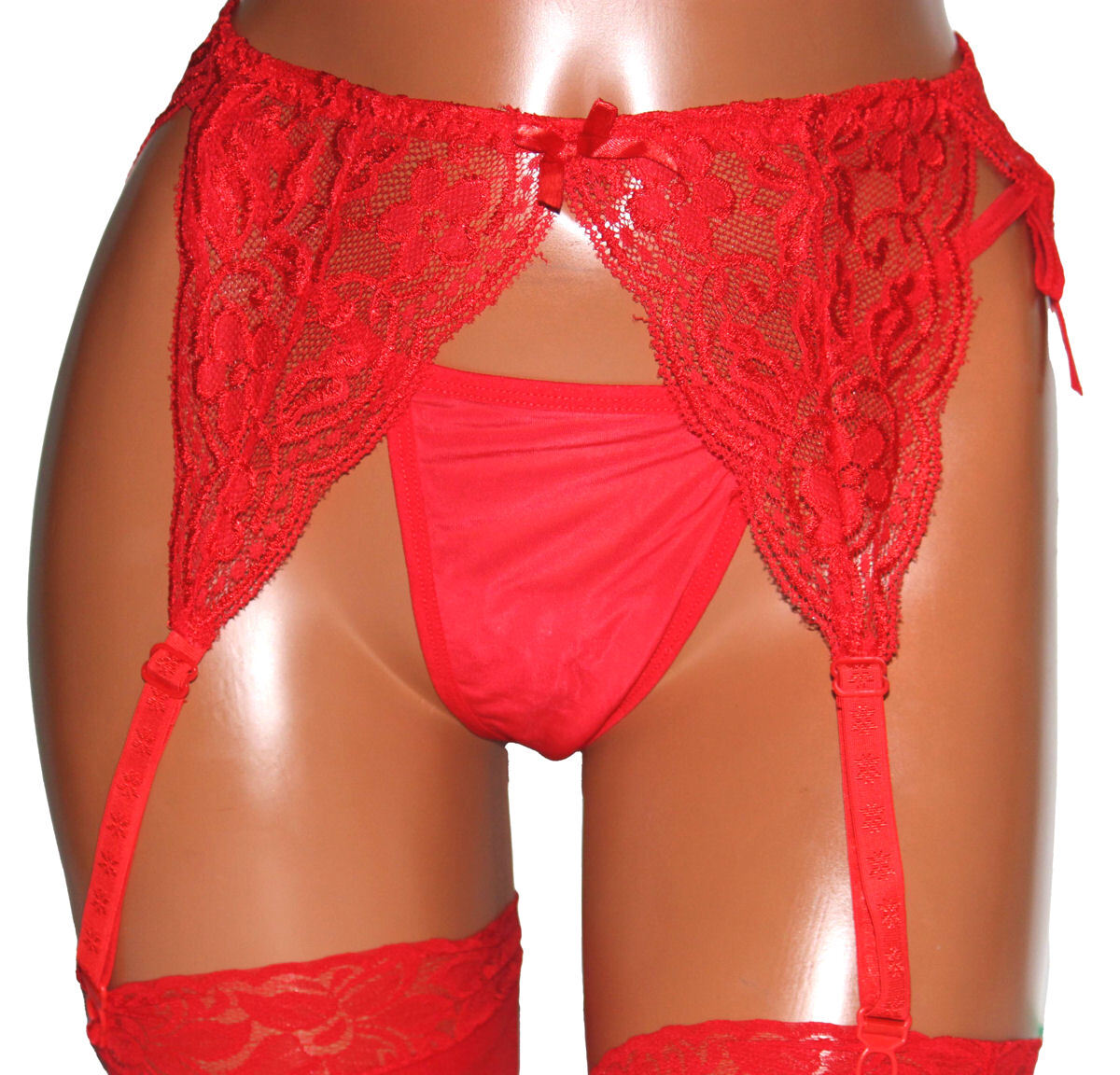- NA ガーターベルト 紐Tバック レース ストッキング 3点 セット セクシー ランジェリー ガーター レディース ローター 収納有 BST123 赤
