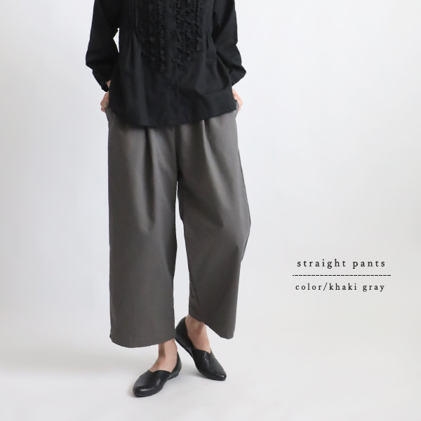- 秋のパンツ祭り 90cm丈 コットンチノ生地 チノパン 誰にでも似合う定番パンツ ストレート ゆったり カーキグレ― U66B