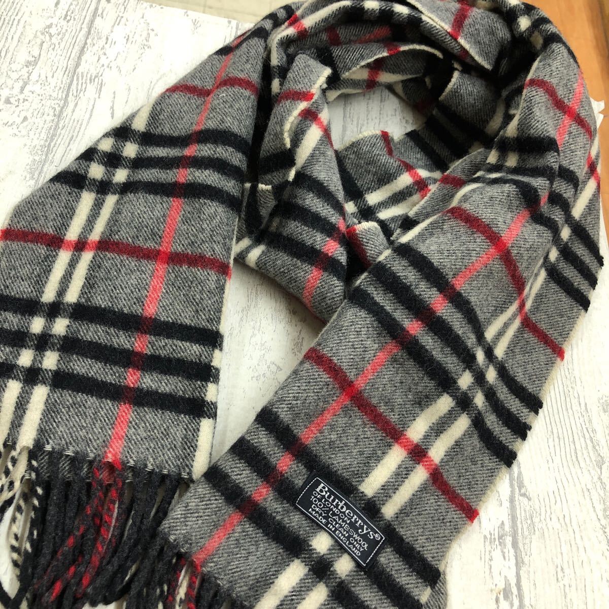 - Burberrys バーバリーズ マフラー ウール フリンジ イングランド製 チェック グレー YM8