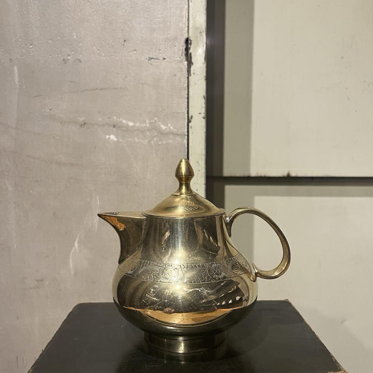 > 真鍮 ティーポット アンティーク 紅茶 茶器 花柄 葉柄 植物柄 アンティーク雑貨 レトロ 昭和レトロ ヨーロッパ インド スペイン 民藝