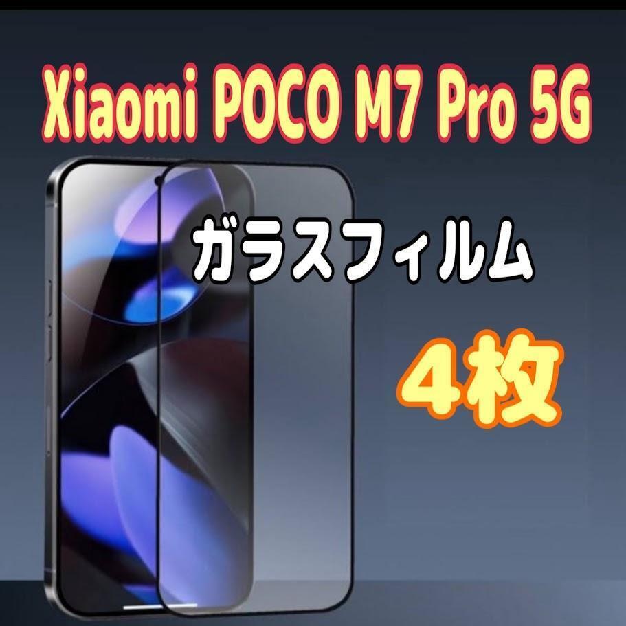 - 4枚 Xiaomi POCO M7 Pro 5G ガラスフィルム 強化 黒枠 スピード発送