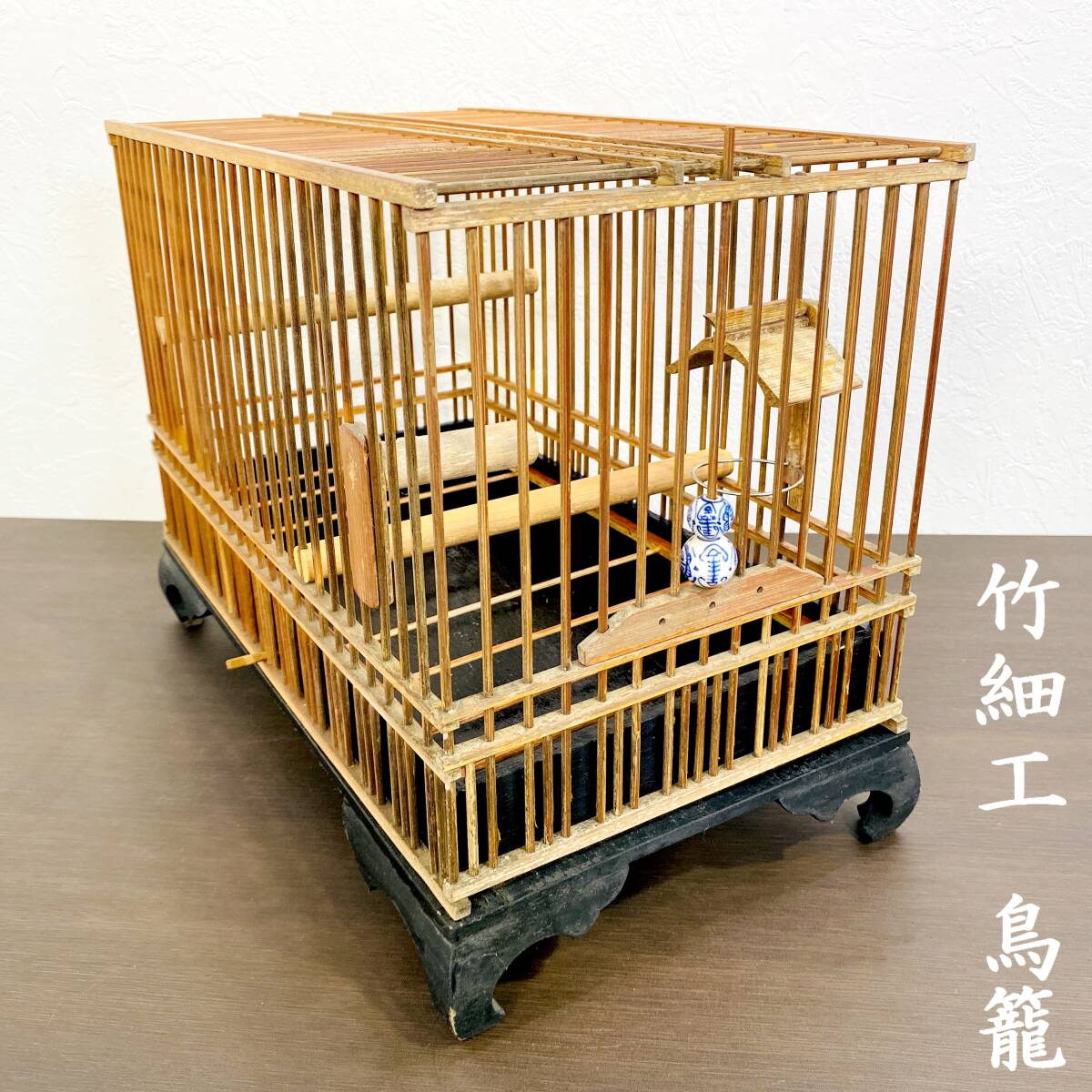 竹細工の味わいが美しい古い鳥かごです。