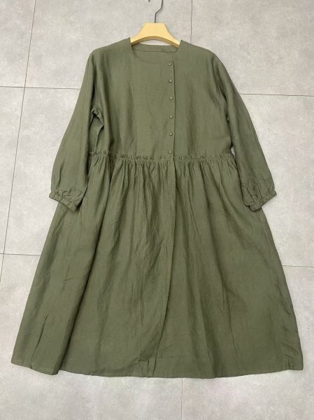- ns ワンピース ゆったり 切り替え 大人可愛 楽ちん チュニック リネン RINEN 麻100% グリーン系