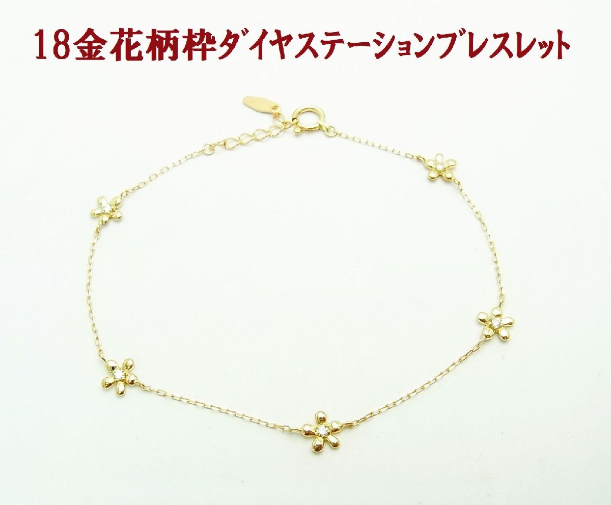 - 上質石 天然ダイヤモンド 0.10ct 18金製 花柄枠ステーションブレスレット 卸価格 商品動画あり 送料込