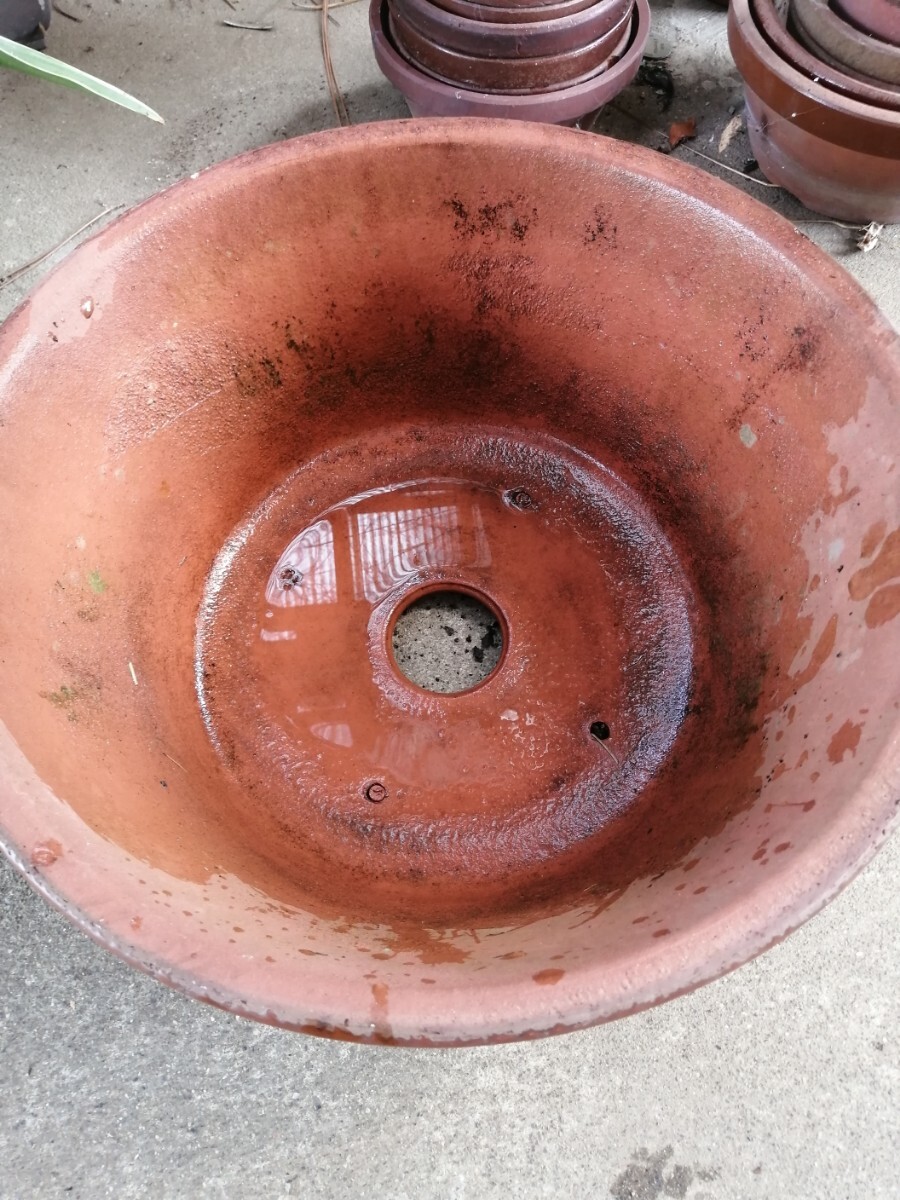 - 美品素焼き植木鉢 15号直径46cm 寄せ植え テラコッタ 昭和植木鉢 盆栽 花木 巨大植木鉢 常滑焼