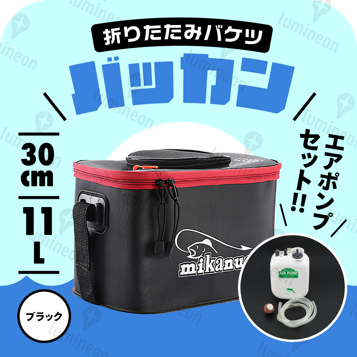 - バッカン 30cm 折りたたみ 釣り バケツ エアー ポンプ 付き エア フタ 水汲み バケツ 肩掛け ショルダー 袋 ホルダー 魚 大容量 g040ca 1