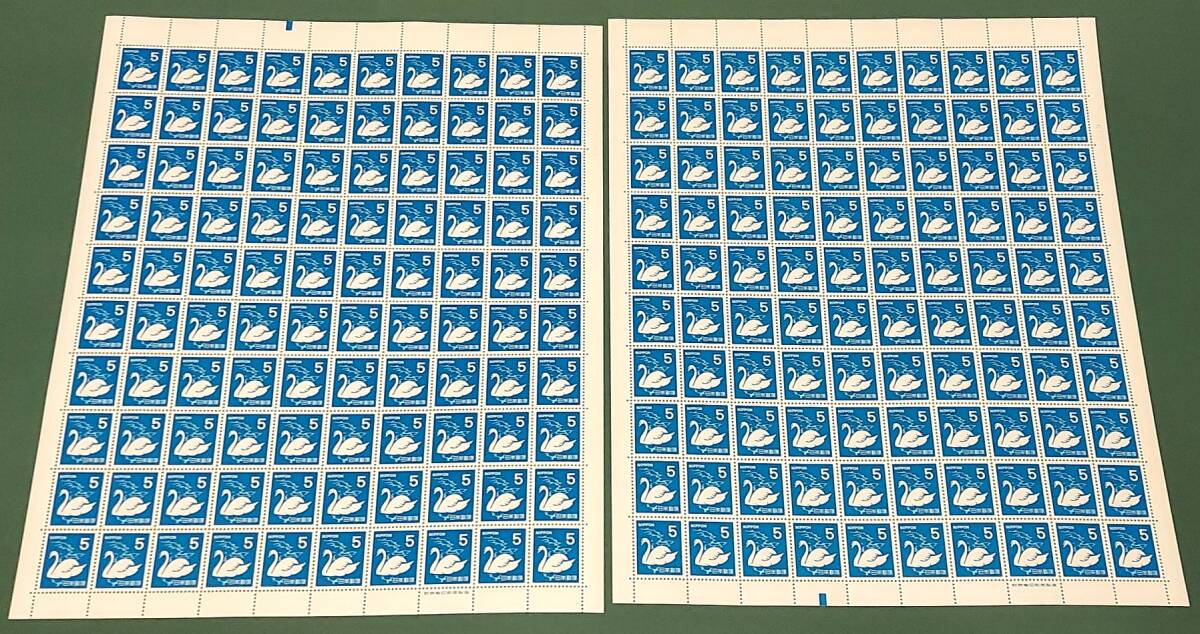 > e5 普通切手 第3次ローマ字入り 5円「こぶはくちょう」100面シート カラーマーク上下 2シート