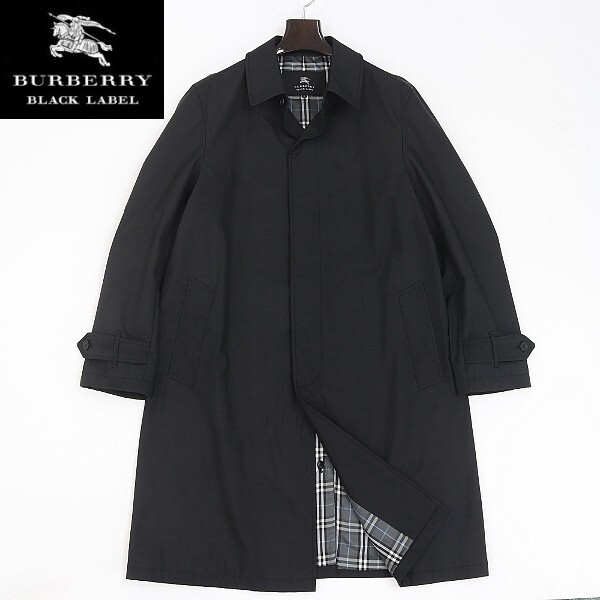 - 【HA253】◆BURBERRY BLACK LABEL バーバリー ブラックレーベル 裏地チェック柄 ステンカラー コート 黒 ブラック LL