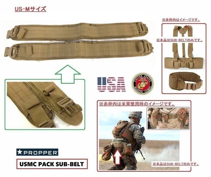 - #【米軍放出品】USMC MOLLEパッド付タクティカルベルト MサイズSUB BELT コヨーテブラウン コンバットベルト サバゲー(60)HI8HK-W#25