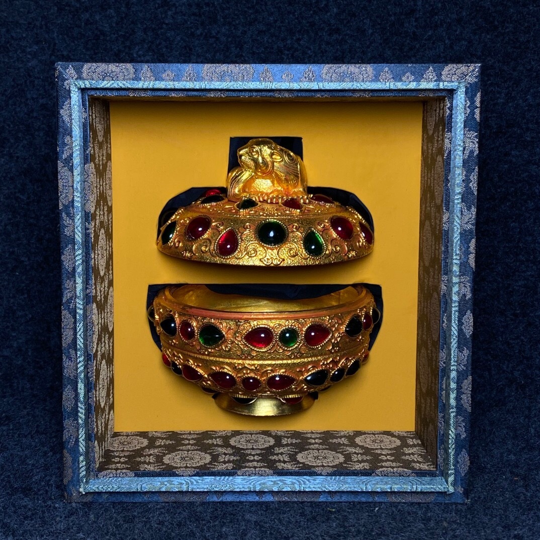 - 蔵友旧蔵出 銅製 塗金 寶石嵌 獣蓋首飾盒 盒付 希少珍品 貴重品 置物 古賞物 中国古玩 中国古美術品
