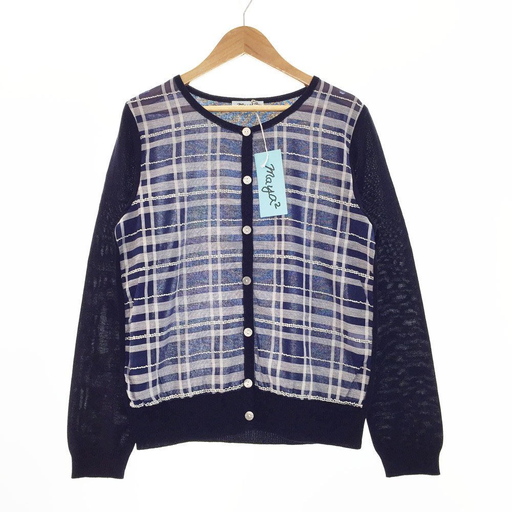 - ★maya2 マヤツー 長袖 チェック柄 コットンニットカーディガン サイズ9号-11号 レディース ネイビー×ブルー×ホワイト 1BA/93739