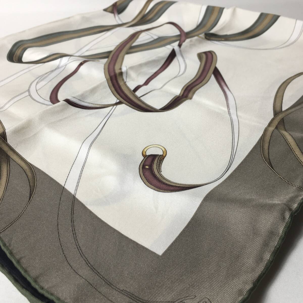 - 78B255|美品|グッチ スカーフ シルク オリーブグレー タグあり