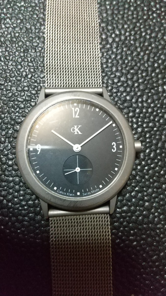 > 電池切れの為現在不動品 Calvin Klein カルバンクライン チタンカラー メンズ/レディース腕時計 スモールセコンド付きの3針 yk-022