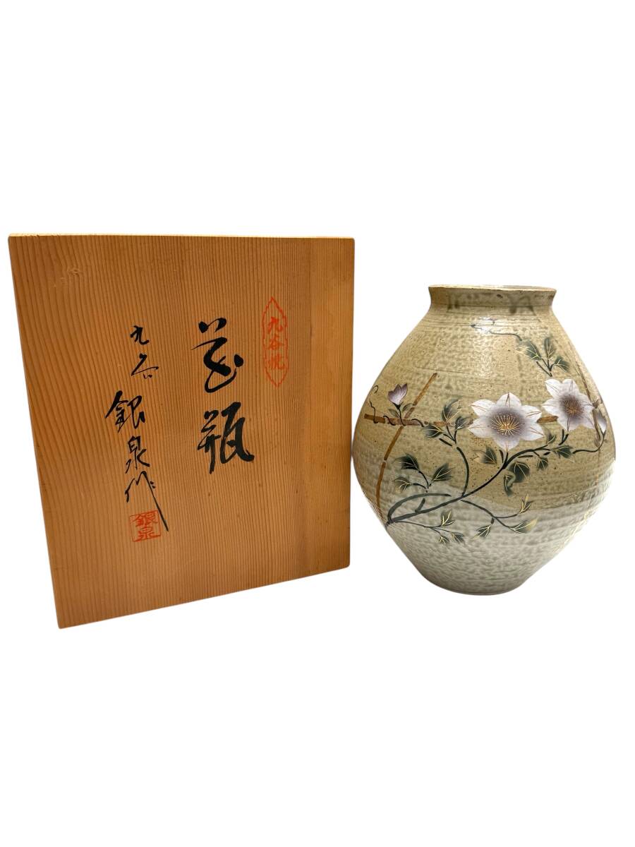 - ●N7-9-25 九谷焼 花瓶 九谷銀泉 木箱 花柄 置物 コレクション 長期保管品