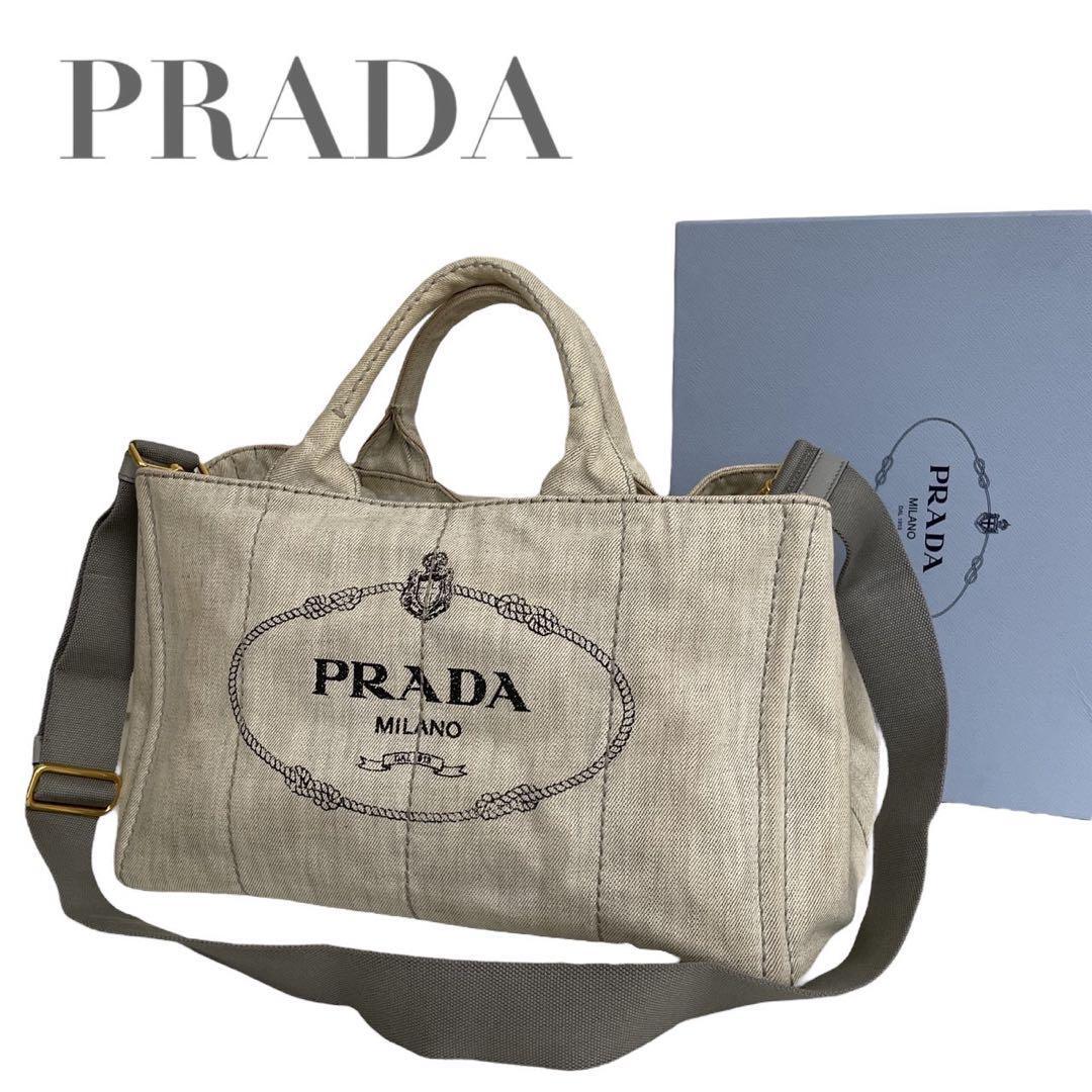 > プラダ カナパM トート 2way ホワイト系 ショルダーバッグ 5053