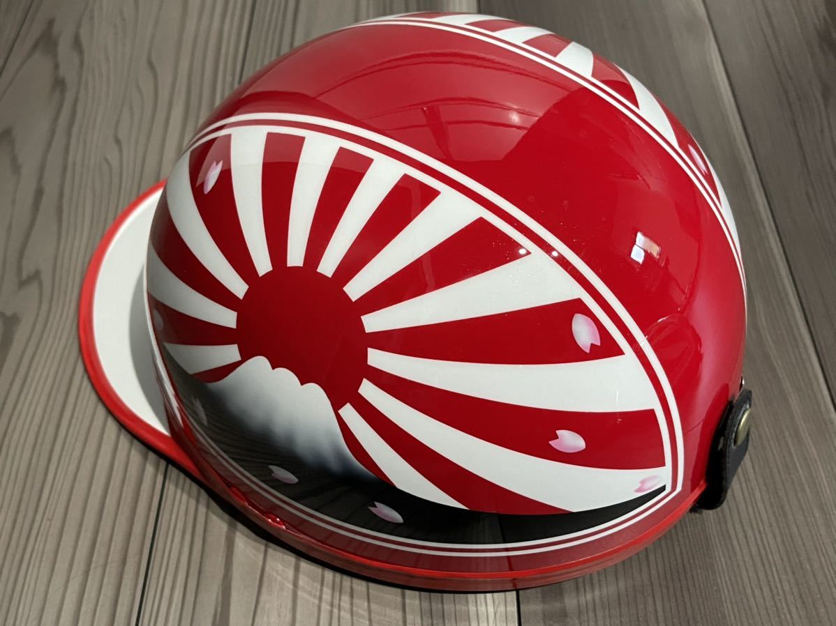 - 赤メイン 桜 富士日章 コルク半 ヘルメット 旧車會 暴走族 三段シート アルフィン ロケットカウル 軽スロ 旭風防 回転灯