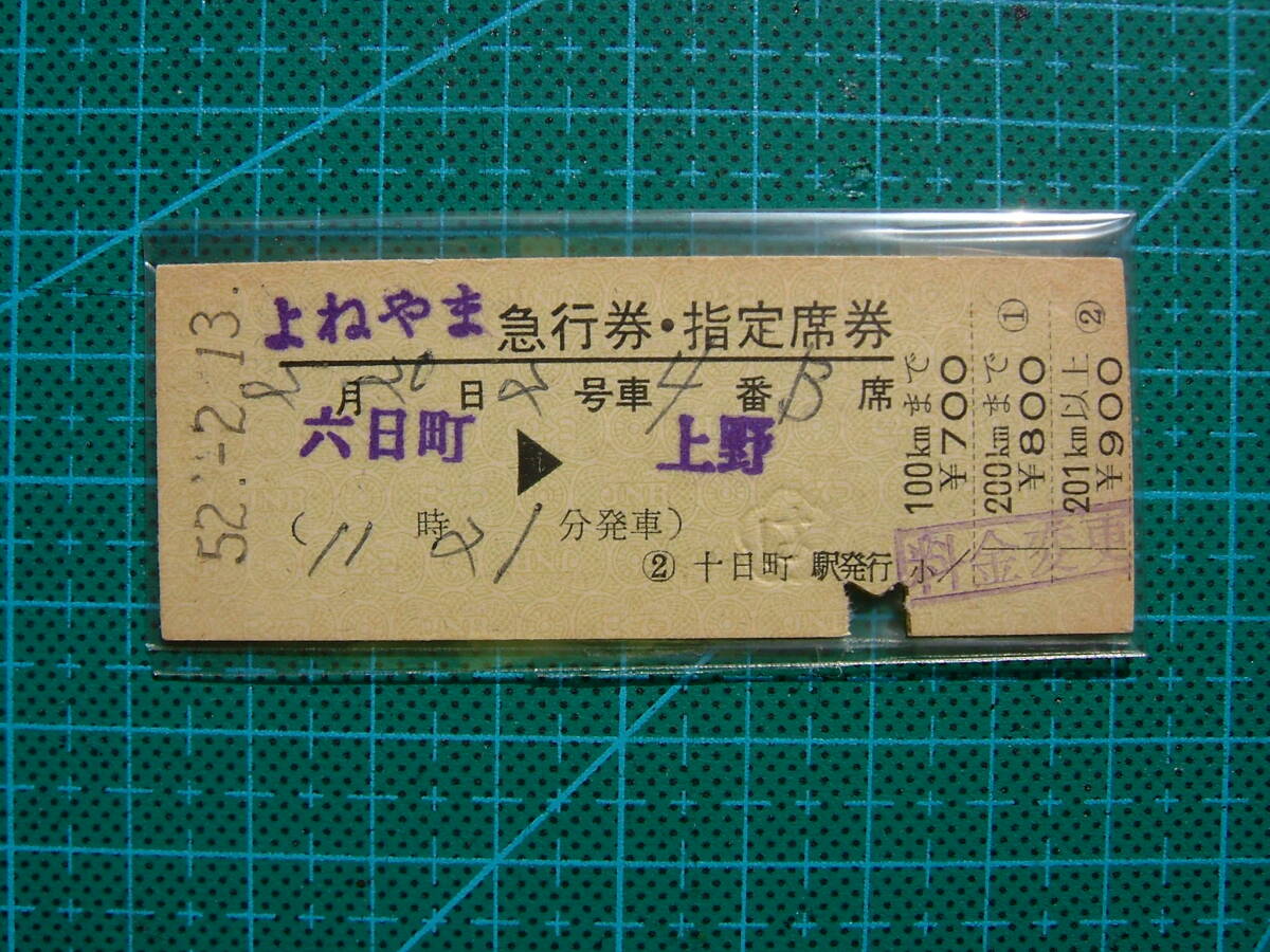 - 国鉄 よねやま 急行券 指定席券 六日町⇔上野