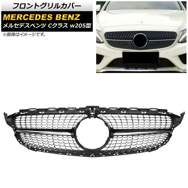 > フロントグリルカバー メルセデス・ベンツ Cクラス W205 C180/C200/C220/C250/C300/C350/前期 2014年~2018年 ブラック ABS製 カメラホー…