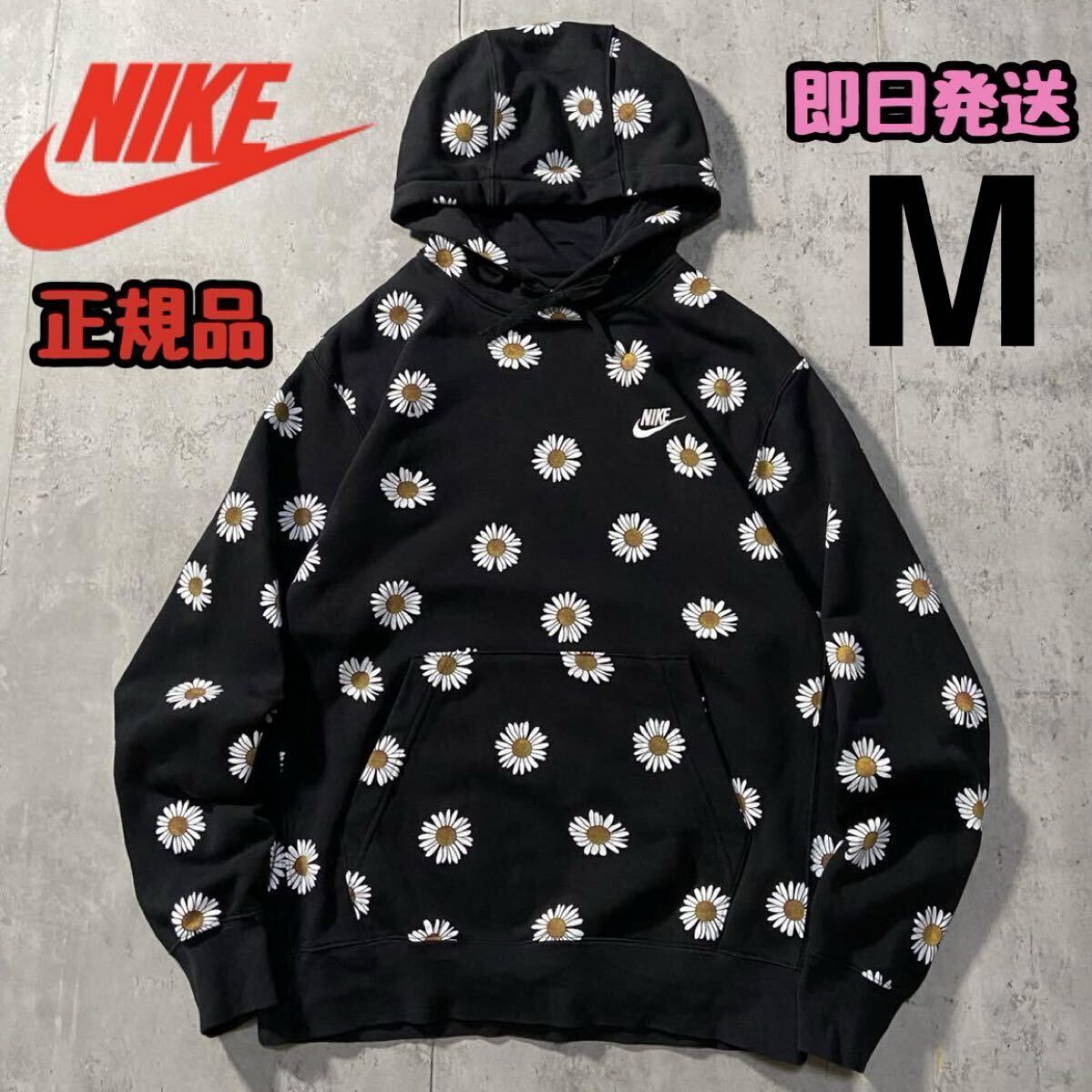 > 【美品】ナイキ NIKE パーカー デイジー スウェット 花柄 総柄 ブラック メンズ レディース ブラック 黒 正規品 M
