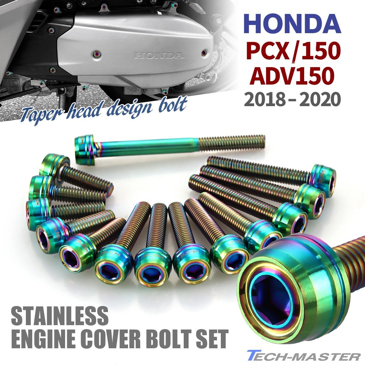 > PCX PCX150 ADV150 2018年~2020年 クランクケースカバーボルト 15本セット ステンレス製 テーパーヘッド レインボーグリーン TB13004