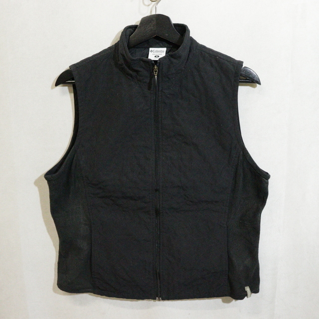 - H910 2000年代製 Columbia コロンビア ポリエステルベスト■00s 表記Mサイズ レディース 黒 ブラック フルジップ フリース切替 無地 古着
