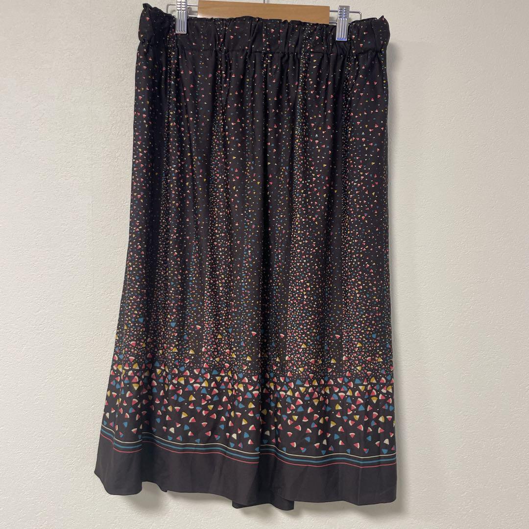 - ひざ丈フレアスカート(one)ミディ丈**ウエストゴム*総柄*裏地*ブラウン