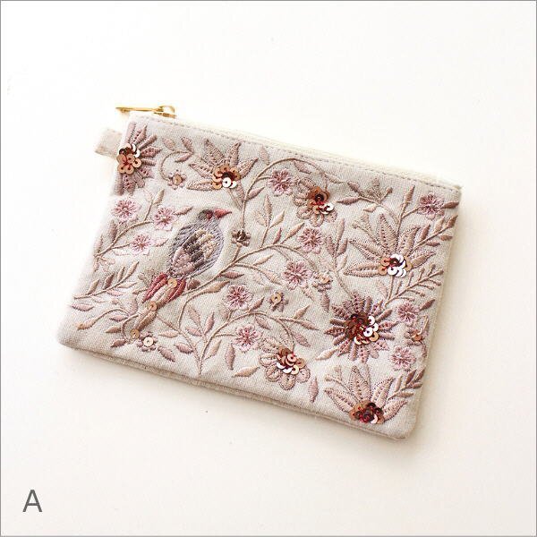 - ティッシュポーチ 刺繍 おしゃれ かわいい 花鳥柄 小物入れ 花鳥ビーズ刺繍ティッシュポーチ 【Aカラー】 送料無料(一部地域除く) kan2700a