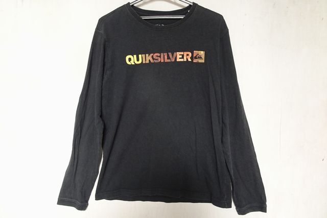 - QUICK SILVER/クイックシルバー/長袖Tシャツ/ロンT/クルーネック/ブランドネームプリント/袖口短めリブ/黒/ブラック/Mサイズ(9/10R7)