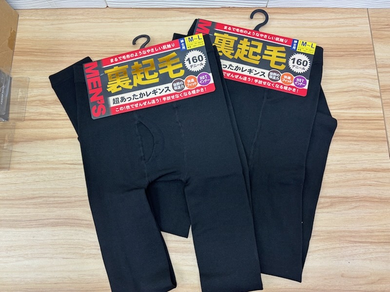 > A603 新品 2枚セット メンズ 裏起毛 9分丈 暖かい インナー 防寒 M〜L 前開き 冷え 冬 スポーツ 極暖 超極暖 スパッツ タイツ レギンス