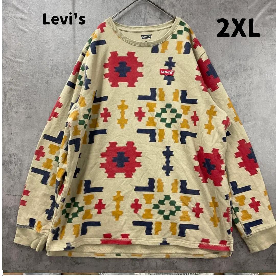 - リーバイス ベージュ 2XL 総柄 ネイティブ調 トレーナー 古着【5670】