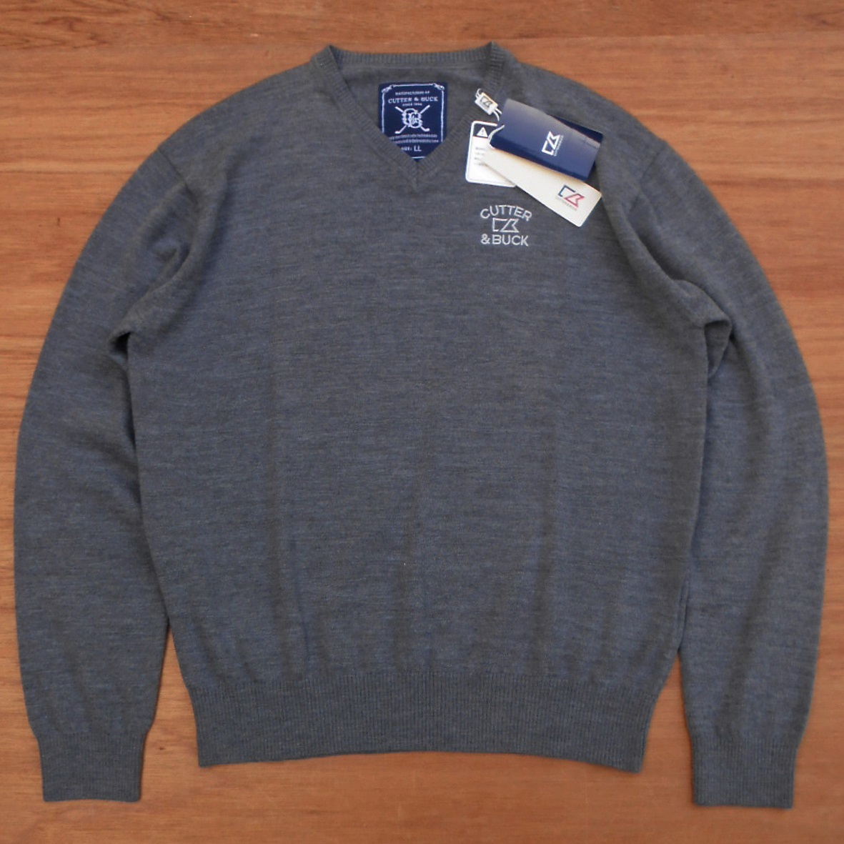 > 新品未使用 CUTTER&BUCK カッターアンドバック LL ウールニット プルオーバートップ XL ミックスグレー Vネック 長袖 ロゴ刺繍 セーター