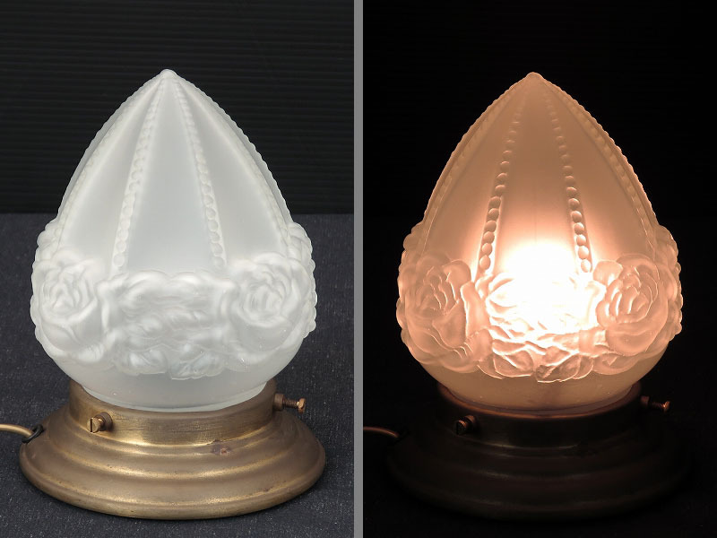 > 薔薇の花がデザインされたアンティーク調の卓上ランプ/カラーレスのシェード/インテリア雑貨/ディスプレイ/室内装飾/店舗什器/AL-2033