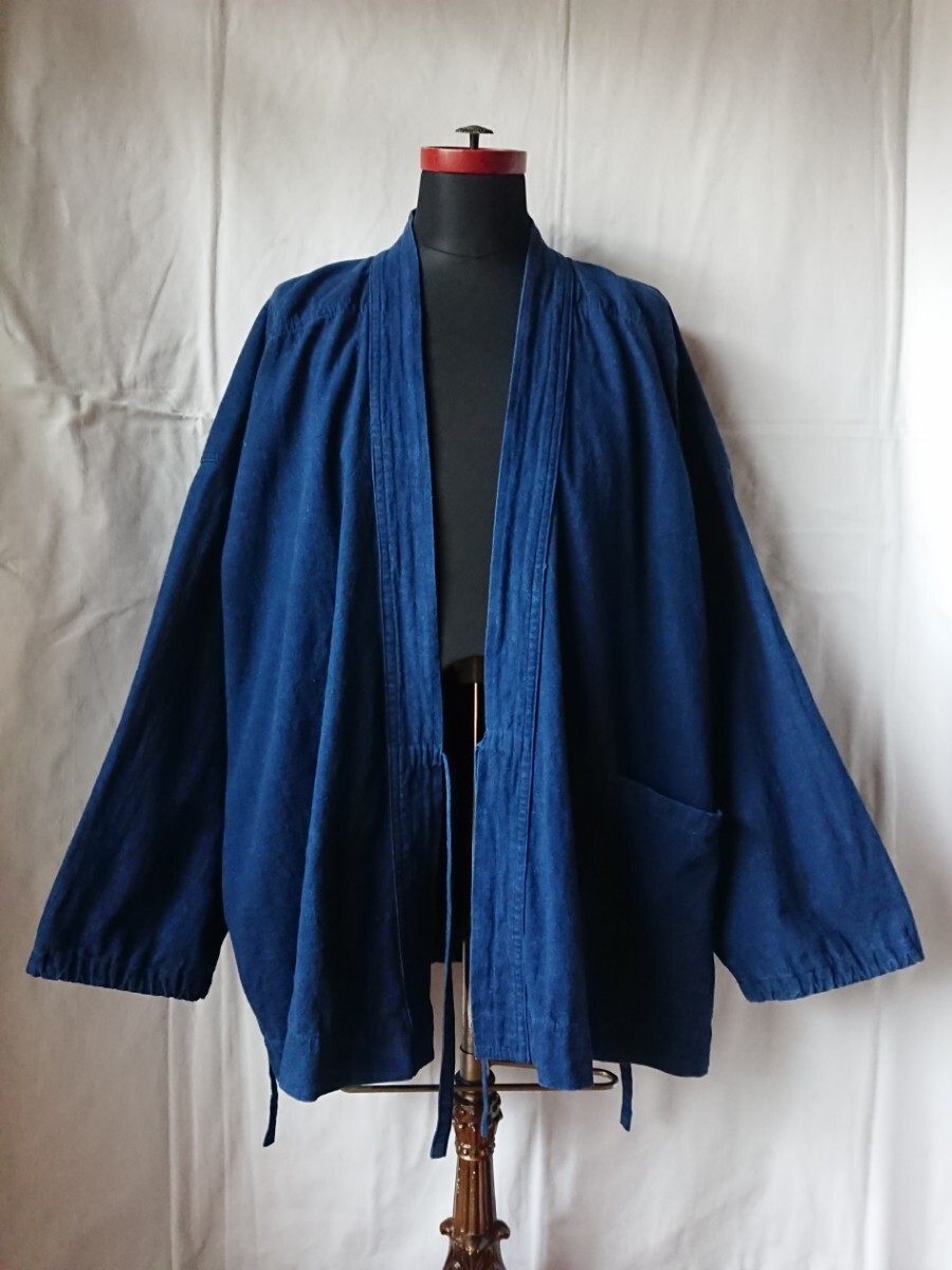 > LLサイズ かなり大きめ 洗濯済 USED品 古着 作務衣 上着 綿 生地 柔らかめ 藍色 インディゴ 和装 仕事着 稽古着 中国製 衣装などにも