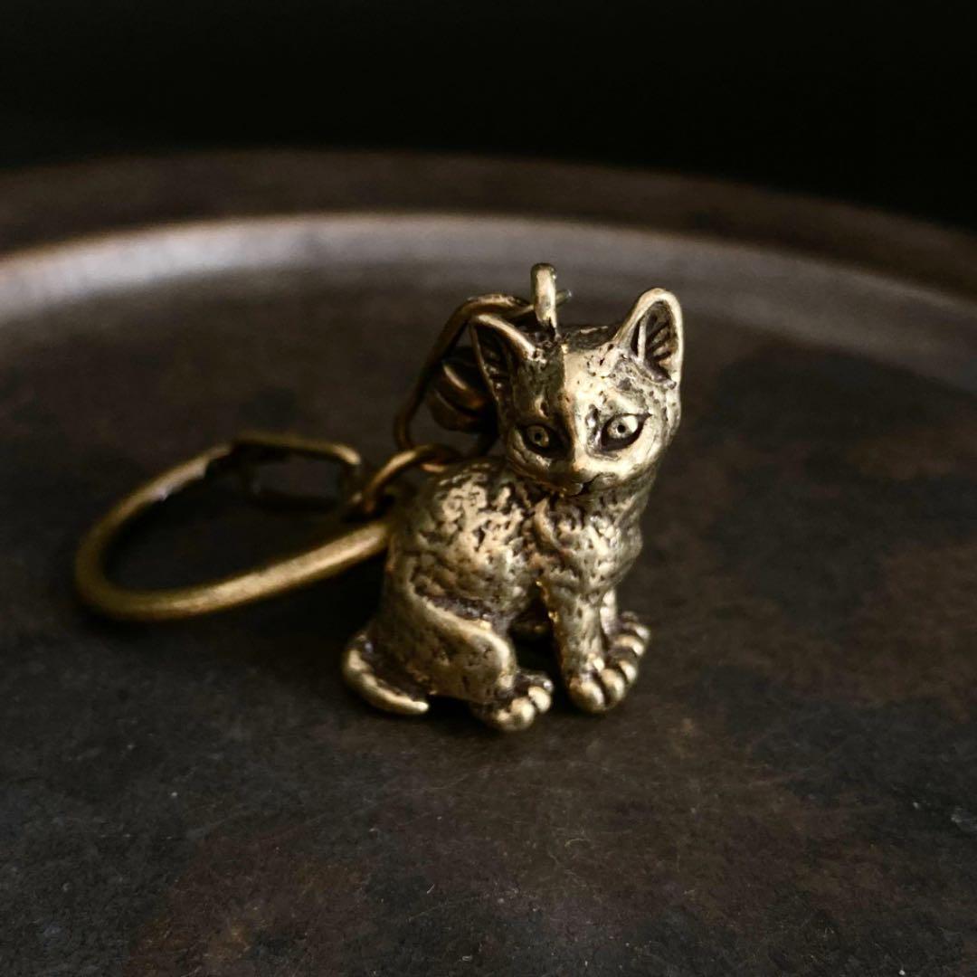 > 136 真鍮 キーホルダー 猫 ネコ 動物 ビンテージ 風水 金運 開運 レトロ アンティーク 真鍮製 チャーム アクセサリー パーツ ハンドメイド