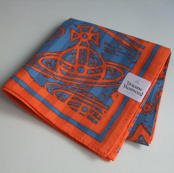 - Vivienne Westwood ヴィヴィアン・ウエストウッド ストライプ X ORB柄 ハンカチ 未使用品 オレンジ系 オーブ柄