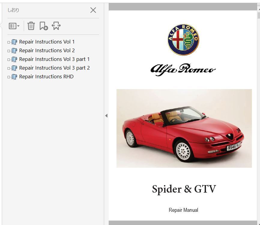 > アルファロメオ GTV & Spider スパイダー 916 整備書 Ver1 修理書 配線図 ボディー修理 ワークショップマニュアル Alfa Romeo GTV