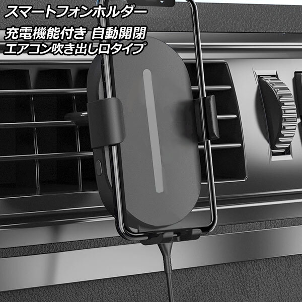 - スマートフォンホルダー 充電機能付き 自動開閉 エアコン吹き出し口タイプ 汎用 車載用 ワンタッチでアームが自動開閉!簡単スムーズにス…