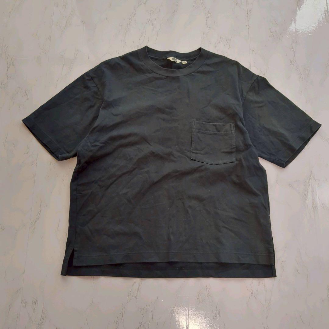 > ユニクロ オーバーサイズ クルーネック Tシャツ M 黒 メンズ 古着