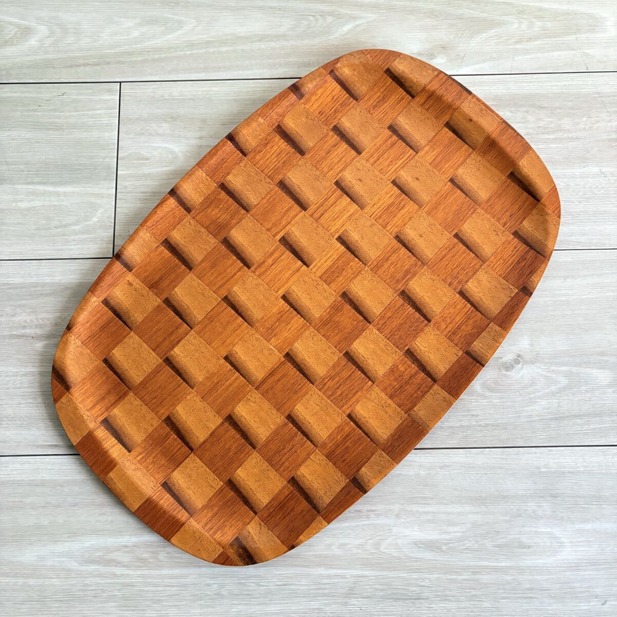 - アメリカビンテージ チークプライウッド 市松模様貼り トレイ