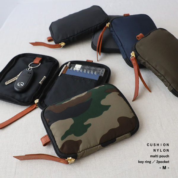 - 新作 Mサイズ クッションナイロン キーケース カードケース キーリング 牛革レザー ポーチ 軽量 マルチポーチ S09E