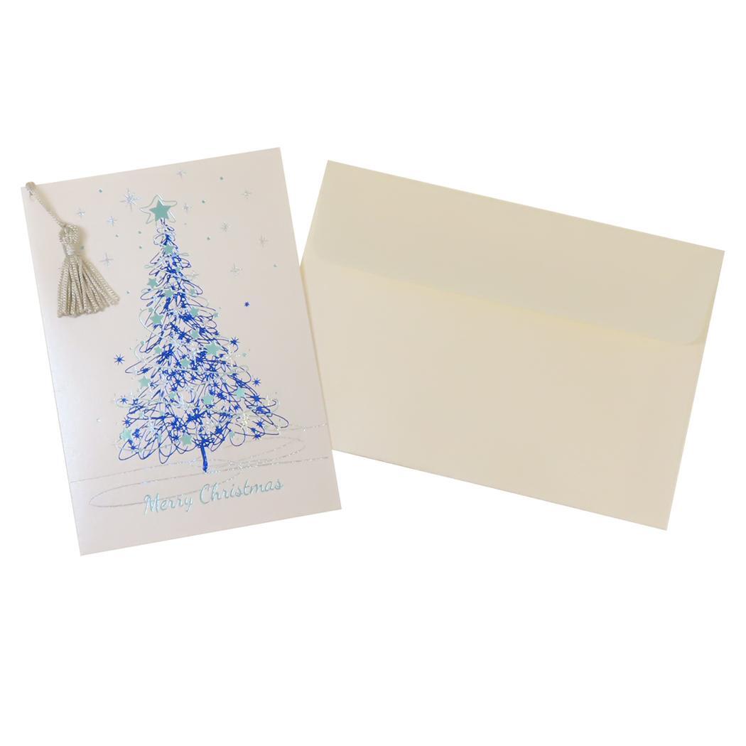 - CHRISTMAS グリーティングカード クリスマスイタリアカード ツリー 青と銀 アクティブコーポレーション エンボス加工 箔押