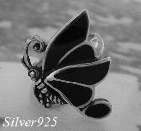 - シルバー925銀の天然石オニキス埋め込み蝶ちょうちょバタフライ リング/16号ラスト1個