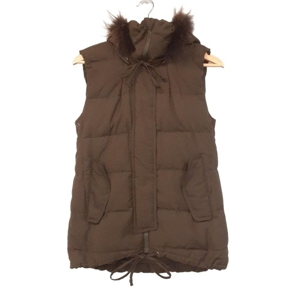 > プラステ PLS+T(PLST) ダウンベスト サイズ0 XS - カーキ×ダークブラウン レディース ファー/冬 美品 ジャケット