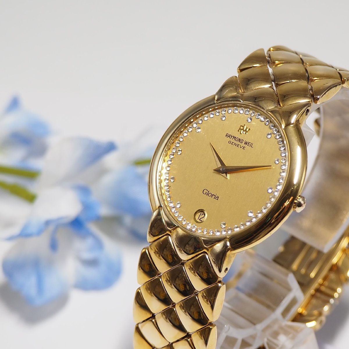 - 美品 レイモンドウィル RAYMOND WEIL ラウンドダイヤ デイト メンズ 腕時計 ゴールド H111 中古