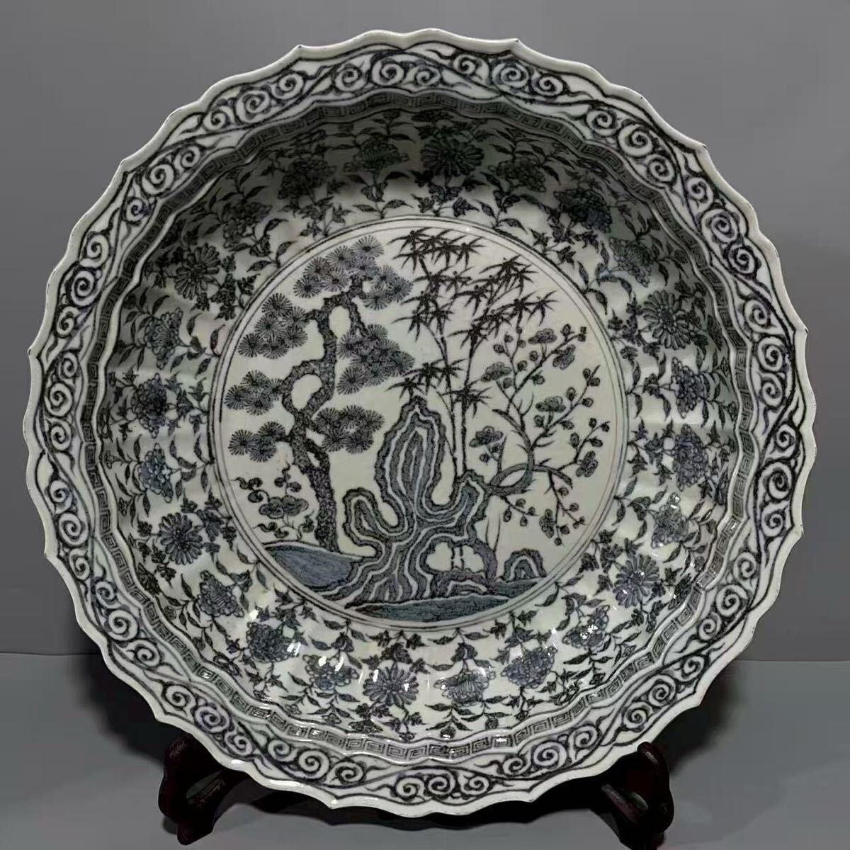 > 【竹河】中国古美術 明時代 洪武年 青花 大皿 時代物 唐物 古玩 骨董 藏出 置物 骨董品 当時物 置物 br4