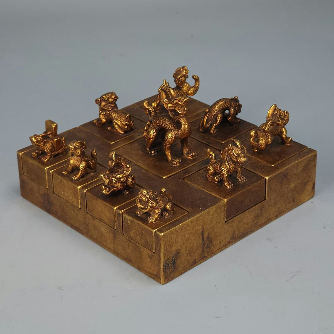 - ◆羽彰・古美術◆Y0261清時代 銅塗金 印 細密細工★古置物★古賞物★古擺件★蒐集家放出★唐物