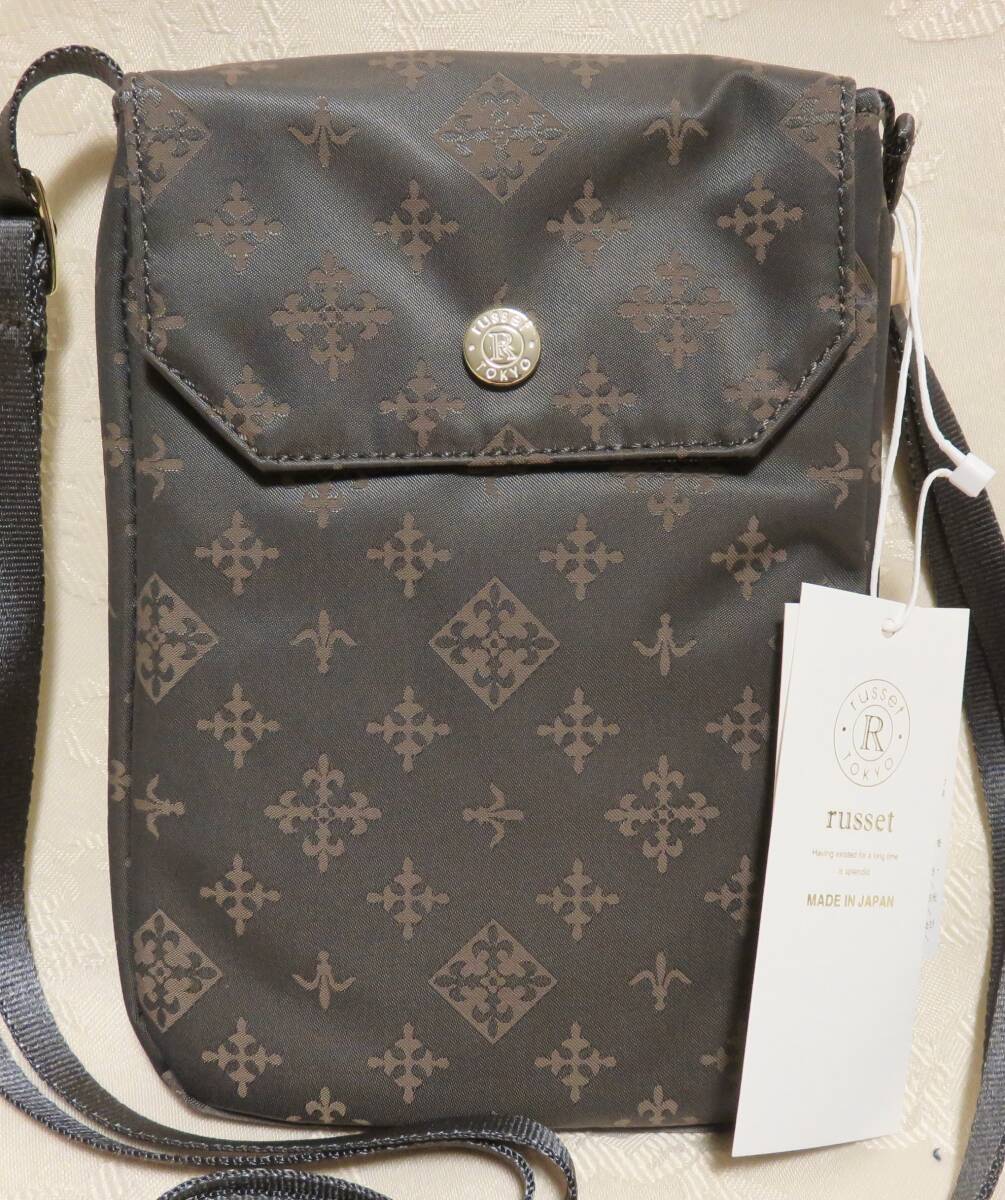 > 未使用 russet ラシット スマホ ショルダー フォンバッグ グレー ピンク スマホ ケース ミニショルダー バッグ ポシェット パスポート 旅行